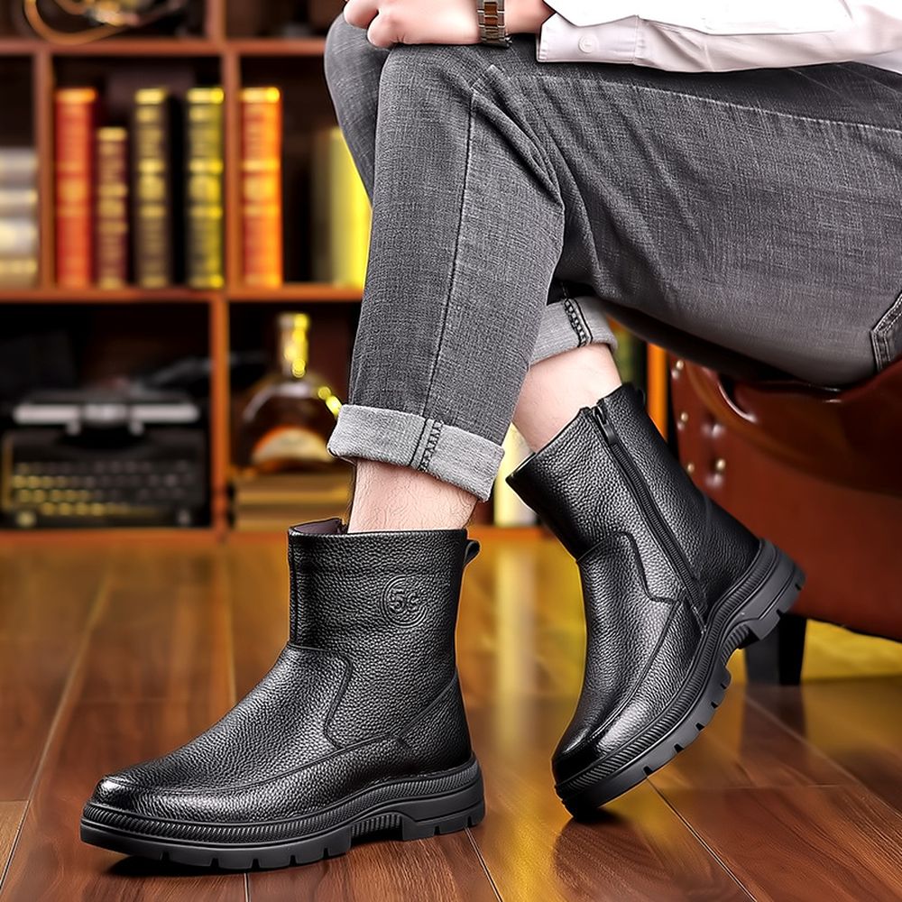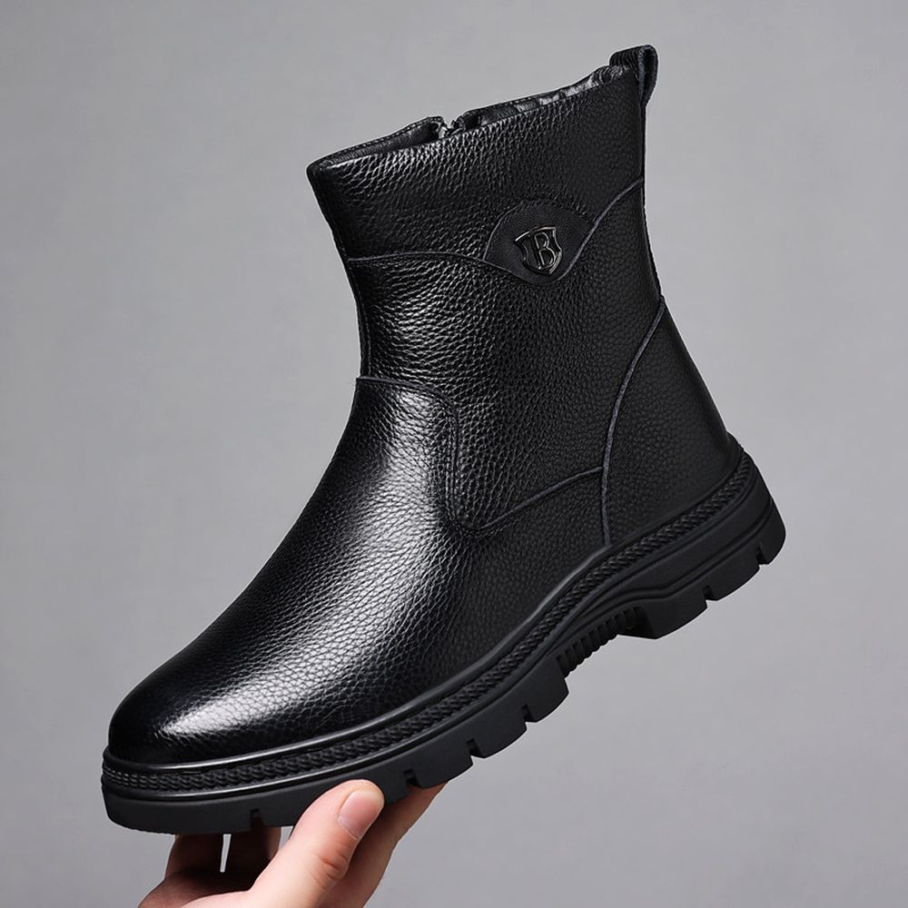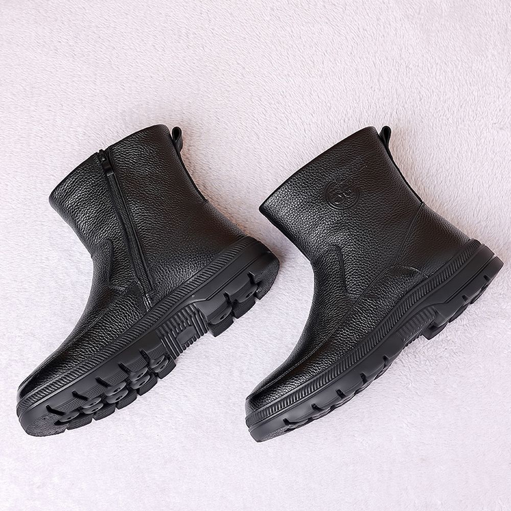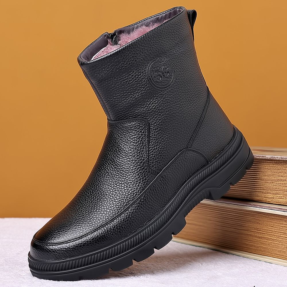Men's Cotton Cowhide High-Top Snow Boots Plus Fleece Warm Boots