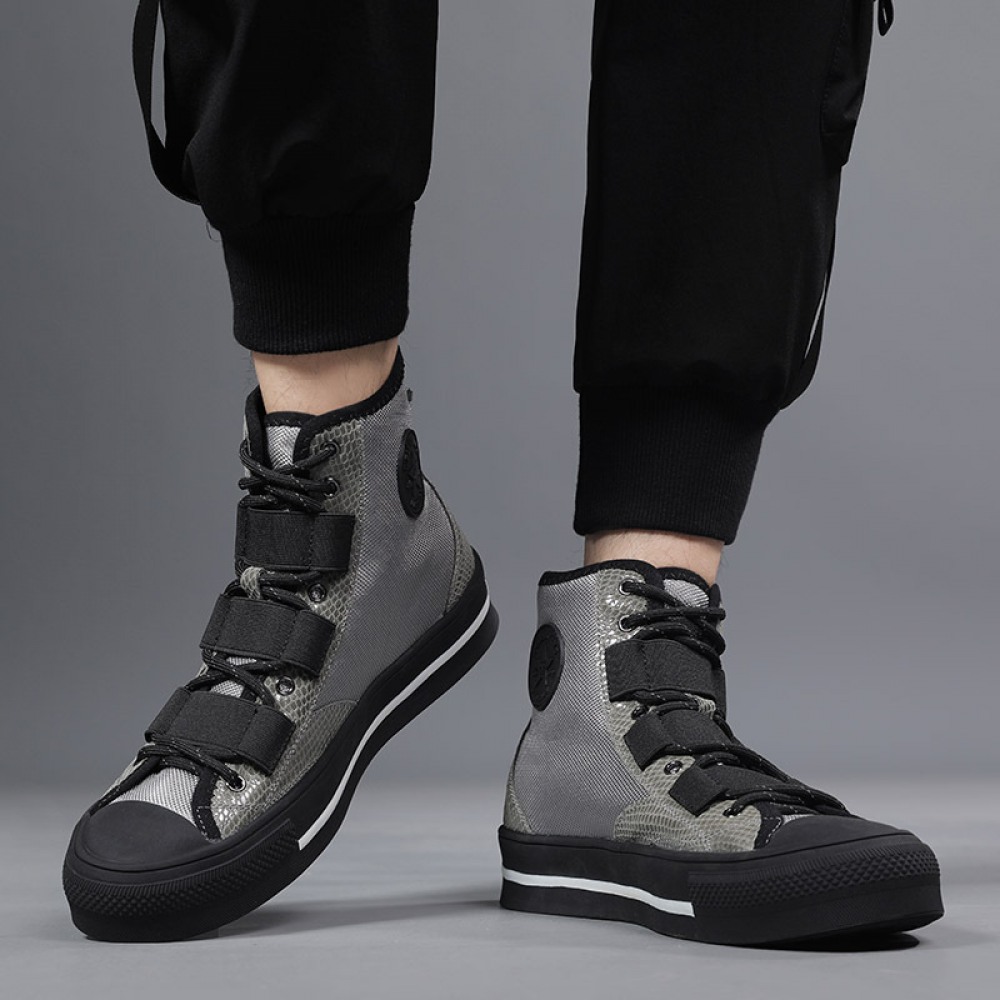 Men's Round Toe Fabric Stitching Casual Canvas Flat Heel Shoes