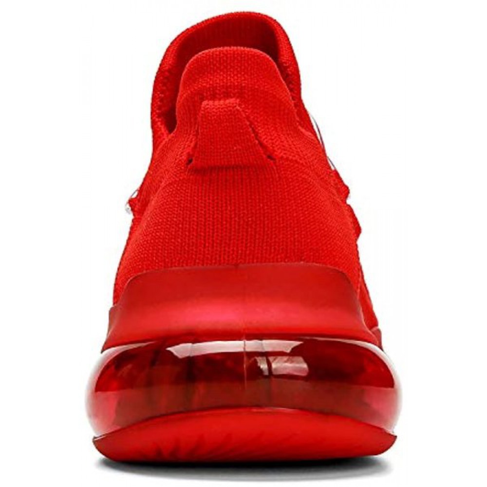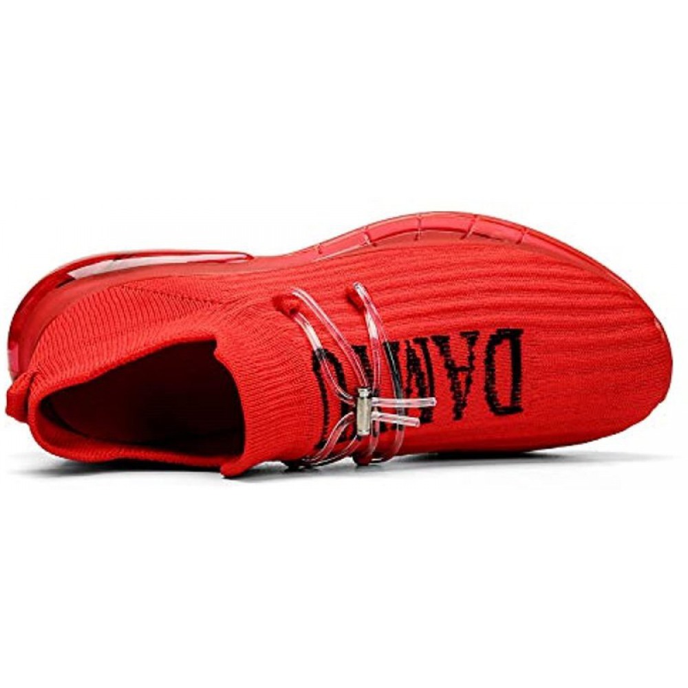 Men's Breathable Knit Slip On Sneakers Lightweight Athletic Casual Sports Shoes High Top All Red