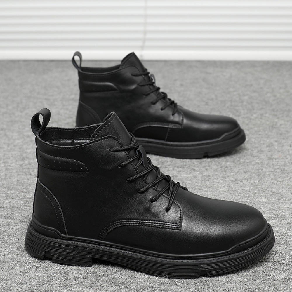 Men's Autumn and Winter New High-Top Cotton Shoes Leather Casual Short Martin Boots