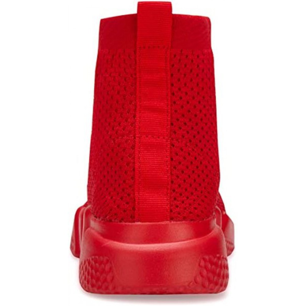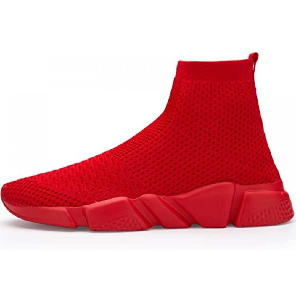 Men's Breathable Knit Slip On Sneakers Lightweight Athletic Casual Sports Shoes High Top All Red