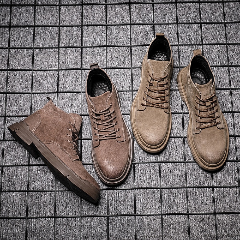 New Men's Leather Short Martin Boots Desert Rhubarb Boots High-Top Shoes