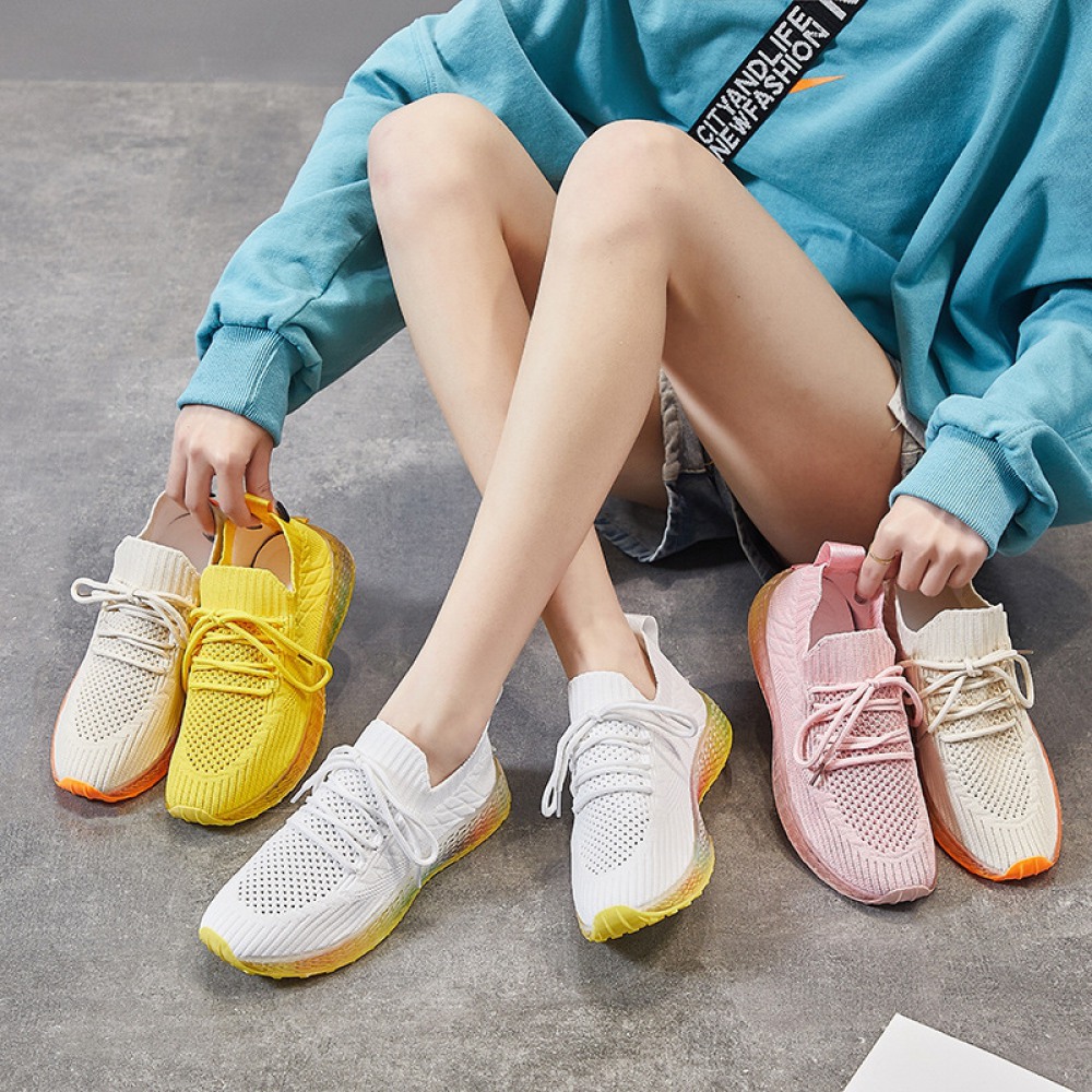 Spring and Summer New Flying Woven Sports Shoes Female Breathable Student Running Casual Sneakers